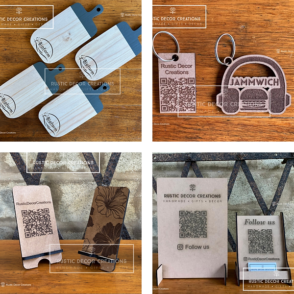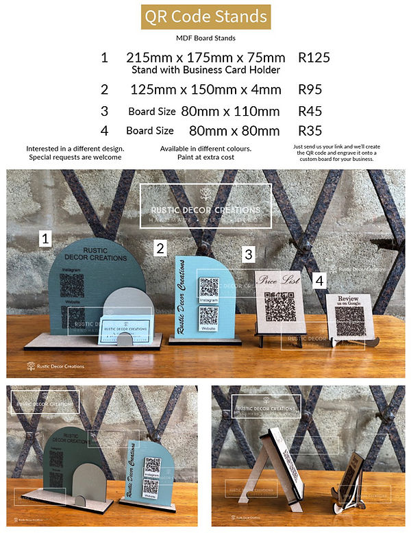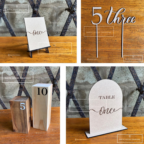 Custom Table Numbers available in different shapes, designs and colours. Can be engraved with QR code and logo.